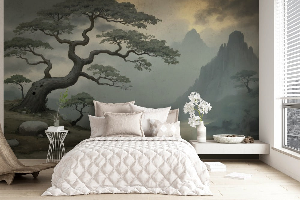 Pour un intérieur qui recherche une ambiance sereine et une connexion avec la nature sauvage, le papier peint "Montagnes Voilées" est un choix contemplatif.